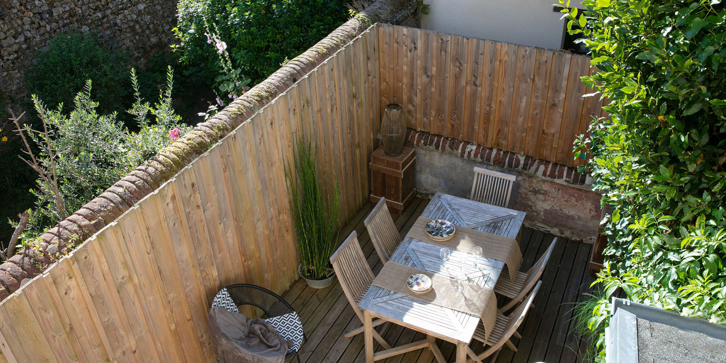 C’est une de ses rares adresses confidentielles de Honfleur. La Maison de Louise, en plein coeur de Honfleur se cache à l’arrière de la Maison des Loges, au calme. Pleine de charme, la Maison de Louise s’organise sur 3 étages. Au rez-de-chaussée, tout d’abord, on apprécie la terrasse extérieure privée donnant sur l’entrée de la maison. A l’intérieur, une entrée, un séjour et une cuisine entièrement aménagée et équipée vous offre un beau cadre de vie. Le canapé est convertible en un lit confortable de 160. Au premier étage se situe la chambre parentale avec une belle vue intimiste d’Honfleur et sa salle de bain. Au second, un nouveau bel espace a été créé avec 2 lits simples et une seconde salle de bain avec douche et WC avec vue sur les toits de la ville. La maison s’adapte aussi bien pour un séjour en famille à Honfleur ou entre amis. En y séjournant, vous bénéficiez également de tous les services de l’hôtel du Dauphin (petits déjeuners, salon de thé, fitness, sauna, espace bien-être…) et de tous les conseils pour vivre pleinement l’expérience honfleuraise, ses visites, quartiers insolites, bonnes adresses…